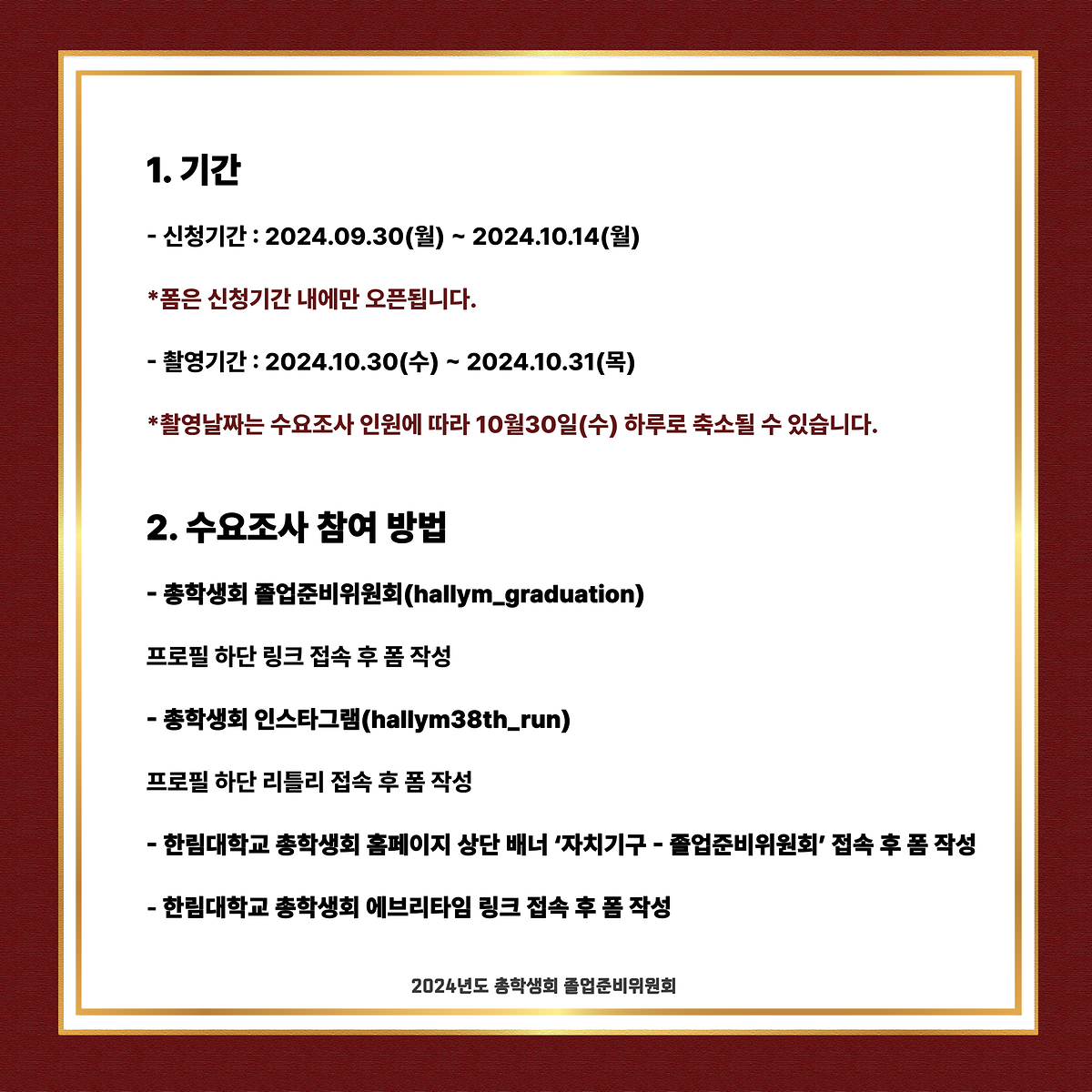 2024년도 총학생회 졸업준비위원회 사진 촬영 수요조사 폼