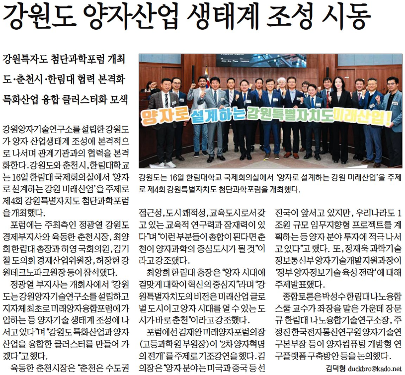 [강원도민일보]강원도 양자산업 생태계 조성 시동