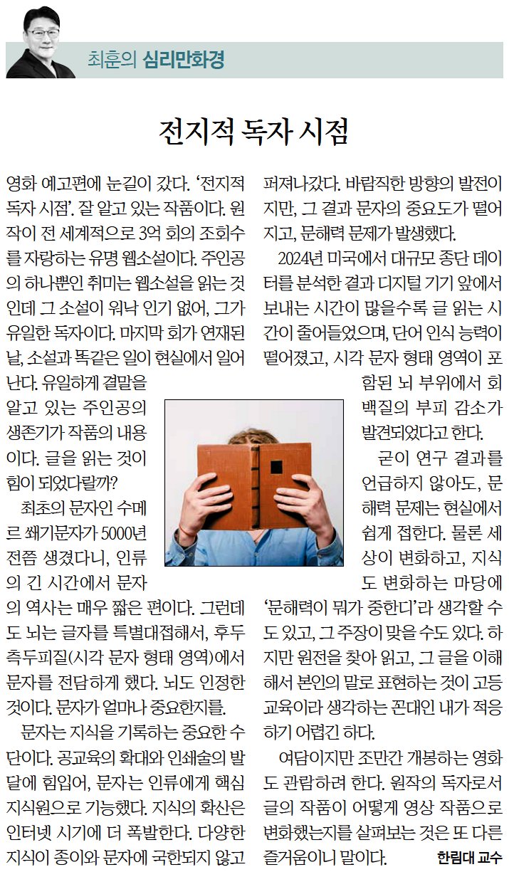 최훈교수님, [최훈의 심리만화경] 전지적 독자 시점