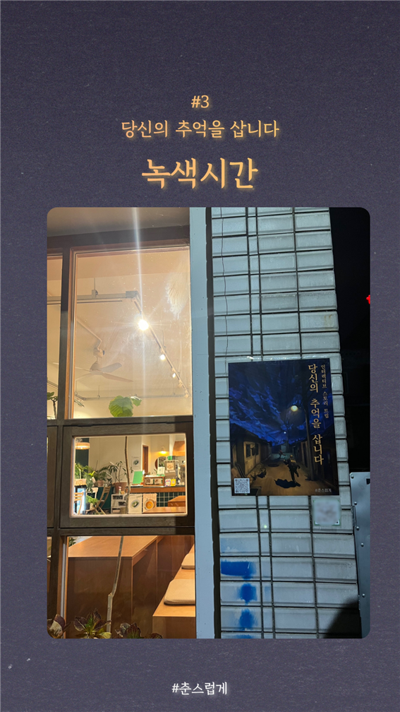 먼저 ‘춘스럽게’ 팀은 새로운 춘천 관광 코스와 방식을 제공하고자 춘천에서 활동 중이신 작가님과 함께 ‘인터렉티브 스토리 트립’을 제작했습니다.