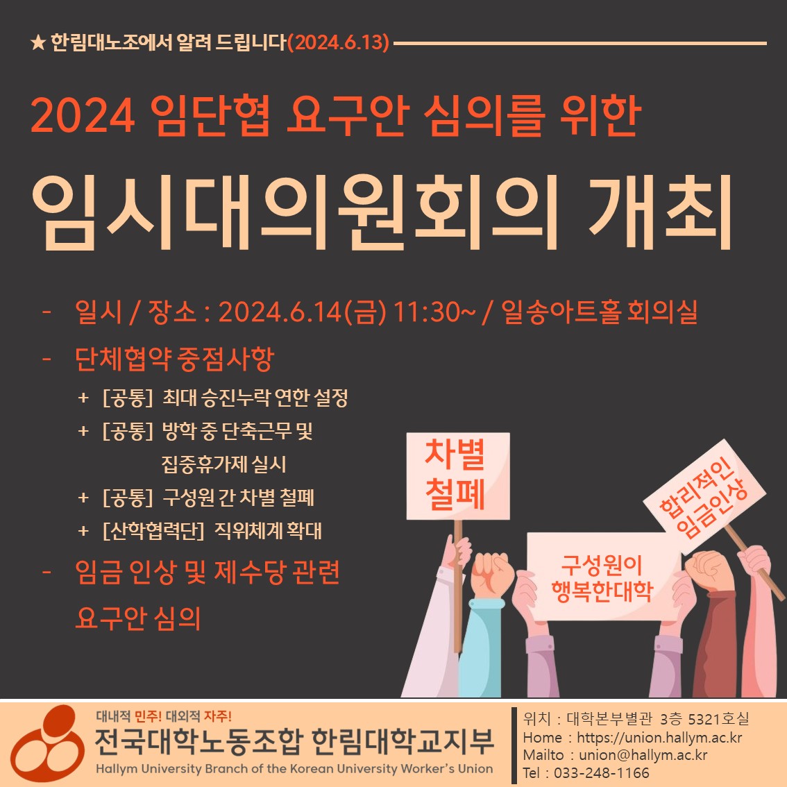 20240613 임단협 요구안 심의를 위한 임시대의원회의 개최